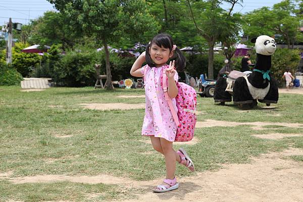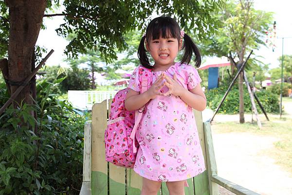 這次製作kitty洋裝與草莓可愛後背包,完成後挑了一個出太陽的週末,帶她到農場玩順便拍照,此件洋裝製作採用110cm的版型,縫製好之後裙子的長度稍微長一些,特地將長度縮短來穿。而後背包的製作可比洋裝辛苦好幾倍。